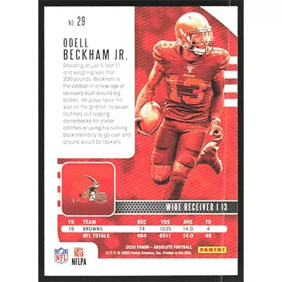 This is a 2020 Absolute Green Odell Beckham Jr. football card. The card is #29 and pictures show condition.