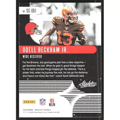 This is a 2020 Absolute Star Gazing Odell Beckham Jr. football card. The card is #SG-OBJ and pictures show condition.