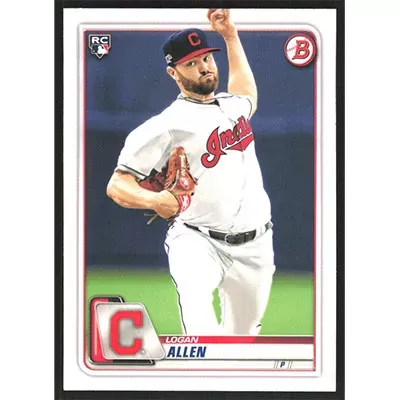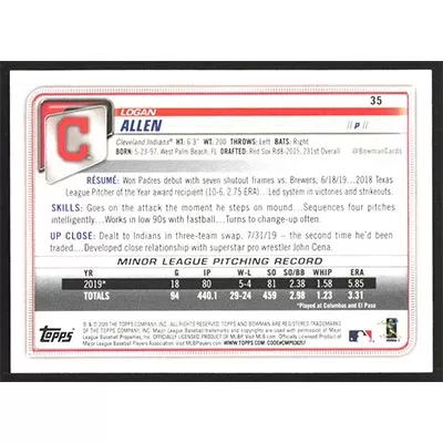 This is a 2020 Bowman Logan Allen baseball card. The card is #35 and pictures show condition.
