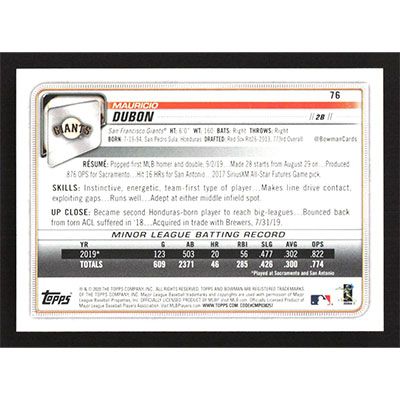 This is a 2020 Bowman Mauricio Dubon baseball card. The card is #76 and pictures show condition.