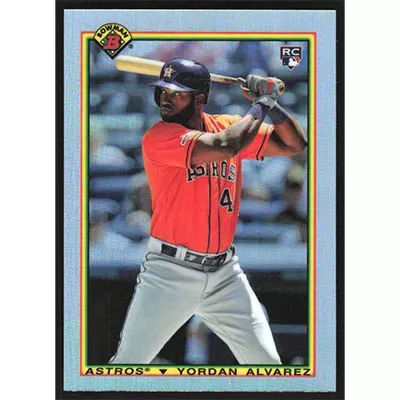 This is a 2020 Bowman Chrome '90 Yordan Alvarez baseball card. The card is #90B-YA and pictures show condition. Team(s): Houston Astros Rookie Card (RC)
