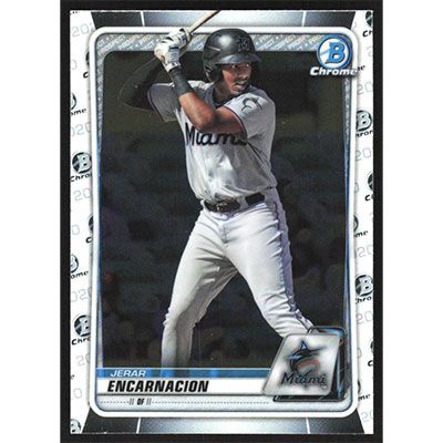 This is a 2020 Bowman Chrome Draft Jerar Encarnacion baseball card. The card is #BD-185 and pictures show condition.