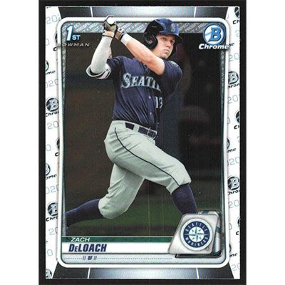 This is a 2020 Bowman Chrome Draft Zach DeLoach baseball card. The card is #BD-28 and pictures show condition.