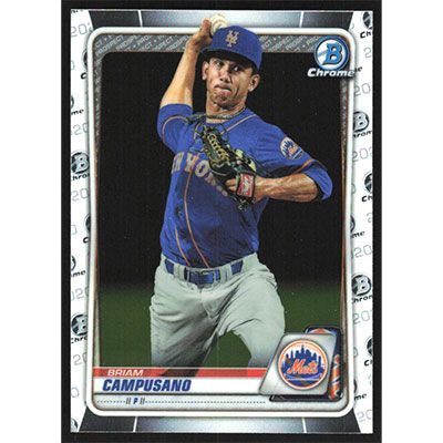 This is a 2020 Bowman Chrome Prospects Briam Campusano baseball card. The card is #BCP-7 and pictures show condition.