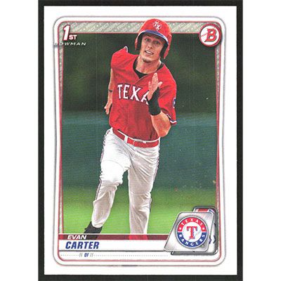 This is a 2020 Bowman Draft Evan Carter baseball card. The card is #BD-126 and pictures show condition.