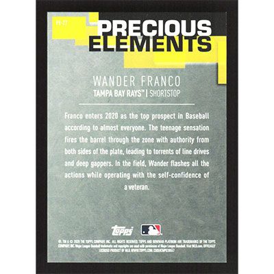 This is a 2020 Bowman Platinum Precious Elements Orange Wander Franco baseball card. The card is #PE-27 and pictures show condition. This card is limited; #'d 11/25.