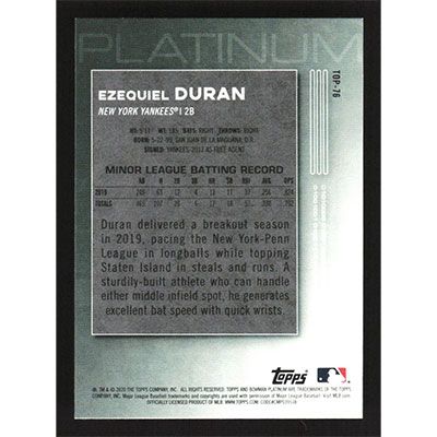 This is a 2020 Bowman Platinum Top Prospects Ezequiel Duran baseball card. The card is #TOP-76 and pictures show condition.