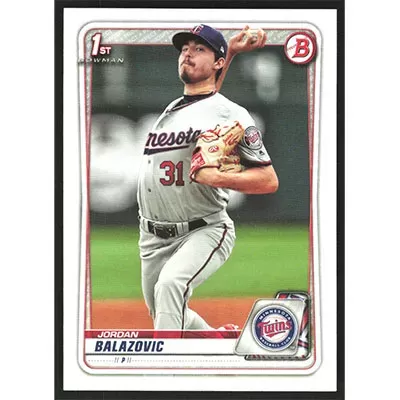 This is a 2020 Bowman Prospects Jordan Balazovic baseball card. The card is #BP-123 and pictures show condition.