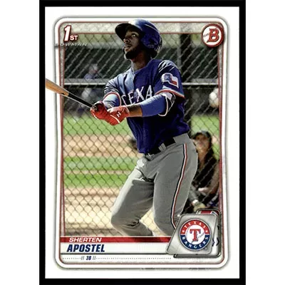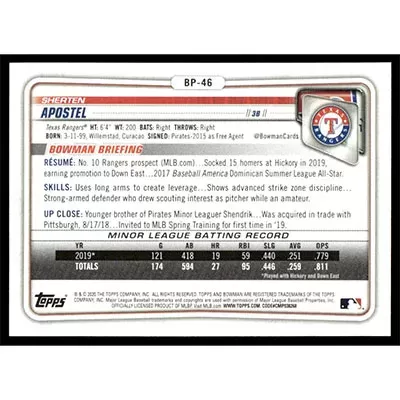 This is a 2020 Bowman Prospects Sherten Apostel baseball card. The card is #BP-46 and pictures show condition.