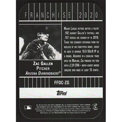 This is a 2020 Bowman's Best Franchise '20 Die Cuts Zac Gallen baseball card. The card is #FFDC-ZG and pictures show condition. Team(s): Arizona Diamondbacks Rookie Card (RC)