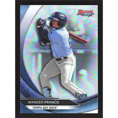This is a 2020 Bowman's Best Top Prospects Refractors Wander Franco baseball card. The card is #TP-1 and pictures show condition. Team(s): Tampa Bay Rays