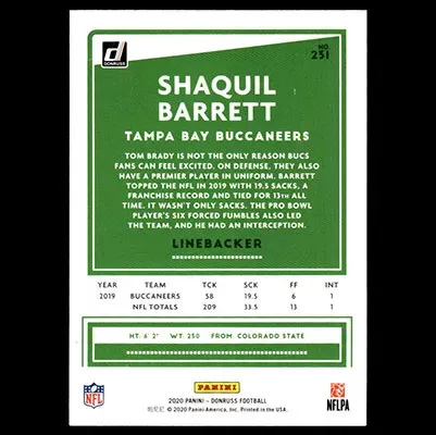 This is a 2020 Donruss Shaquil Barrett football card. The card is #231 and is in NM-MT condition.