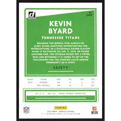 This is a 2020 Donruss Kevin Byard football card. The card is #248 and pictures show condition.