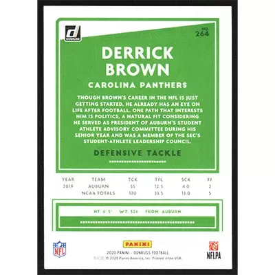 This is a 2020 Donruss Derrick Brown football card. The card is #264 and pictures show condition.