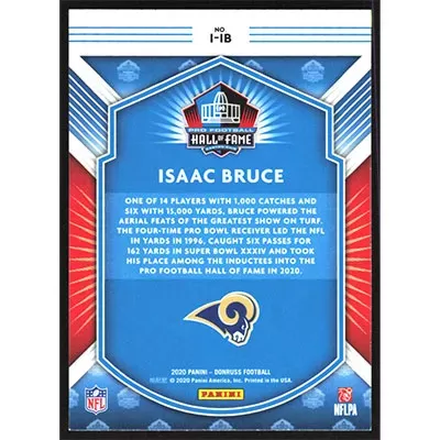 This is a 2020 Donruss Inducted Isaac Bruce football card. The card is #I-IB and pictures show condition.