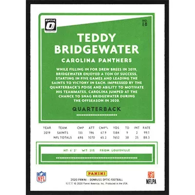This is a 2020 Donruss Optic Teddy Bridgewater football card. The card is #18 and pictures show condition.