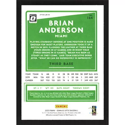 This is a 2020 Donruss Optic Pink Brian Anderson baseball card. The card is #164 and pictures show condition.