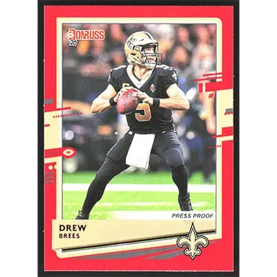 This is a 2020 Donruss Press Proofs Red Drew Brees football card. The card is #175 and pictures show condition.