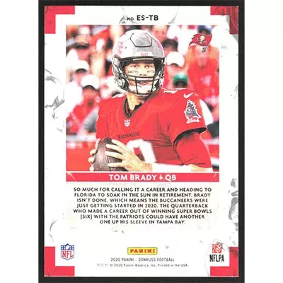 This is a 2020 Donruss The Elite Series Tom Brady football card. The card is #ES-TB and pictures show condition.