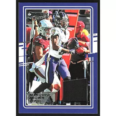 This is a 2020 Donruss Threads Blue Marquise Brown Jersey football card. The card is #12 and pictures show condition.