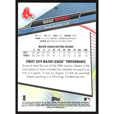 This is a 2020 Finest Rafael Devers baseball card. The card is #24 and pictures show condition.