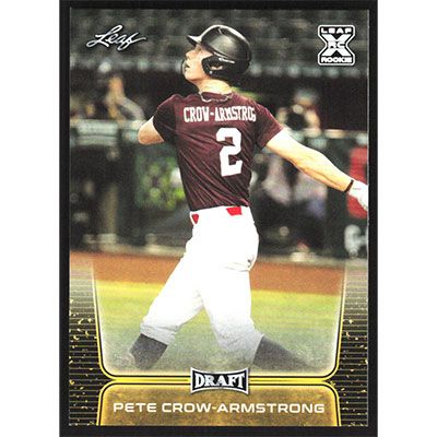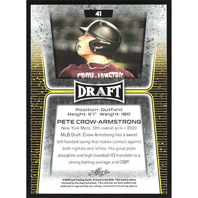 This is a 2020 Leaf Draft Gold Pete Crow-Armstrong baseball card. The card is #41 and pictures show condition.