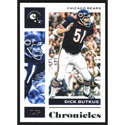 This is a 2020 Panini Chronicles Dick Butkus football card. The card is #18 and pictures show condition.