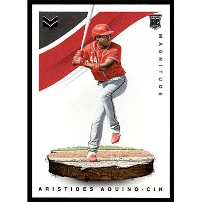 This is a 2020 Panini Chronicles Magnitude Aristides Aquino baseball card. The card is #14 and pictures show condition. Team(s): Cincinnati Reds Rookie Card (RC)