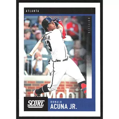 This is a 2020 Panini Chronicles Score Ronald Acuña Jr. baseball card. The card is #23 and pictures show condition.