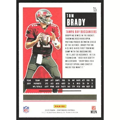 This is a 2020 Panini Contenders Tom Brady football card. The card is #12 and pictures show condition.