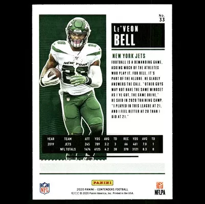 This is a 2020 Panini Contenders Le'Veon Bell football card. The card is #33 . See images for condition.