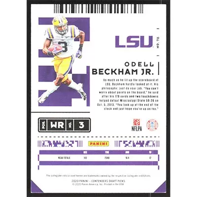 This is a 2020 Panini Contenders Draft Picks Odell Beckham Jr. football card. The card is #78 and pictures show condition.