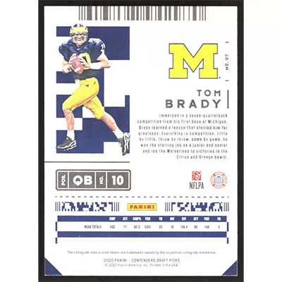 This is a 2020 Panini Contenders Draft Picks Tom Brady football card. The card is #97 and pictures show condition.