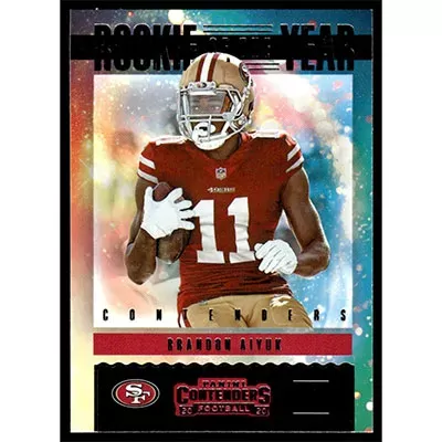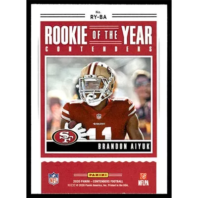 This is a 2020 Panini Contenders Rookie of the Year Brandon Aiyuk football card. The card is #RY-BA and pictures show condition. Team: San Francisco 49ers Rookie Card