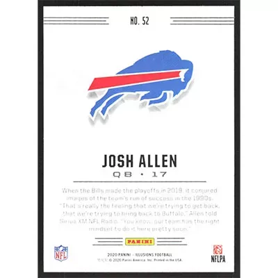 This is a 2020 Panini Illusions Josh Allen football card. The card is #52 and pictures show condition.