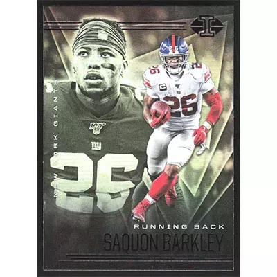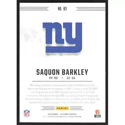 This is a 2020 Panini Illusions Saquon Barkley football card. The card is #83 and pictures show condition.