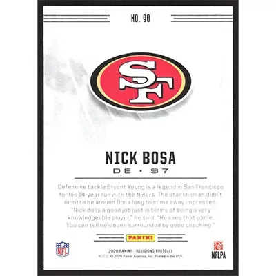 This is a 2020 Panini Illusions Nick Bosa football card. The card is #90 and pictures show condition.