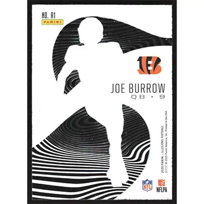 This is a 2020 Panini Illusions Astounding Joe Burrow football card. The card is #A1 and pictures show condition. Team(s): Cincinnati Bengals Rookie Card (RC)