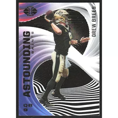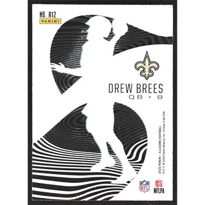 This is a 2020 Panini Illusions Astounding Drew Brees football card. The card is #A12 and pictures show condition.