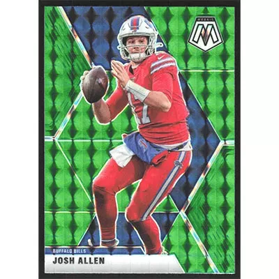 This is a 2020 Panini Mosaic Green Josh Allen football card. The card is #26 and pictures show condition.