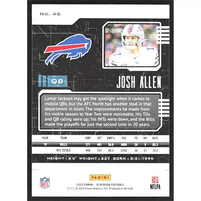 This is a 2020 Panini Playbook Josh Allen football card. The card is #46 and pictures show condition.