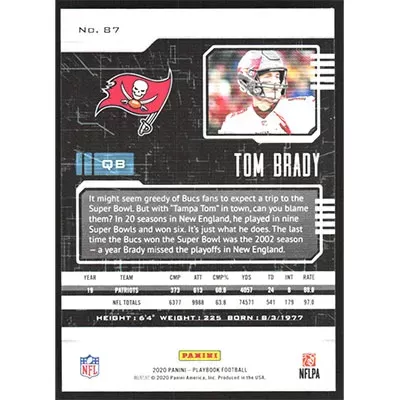 This is a 2020 Panini Playbook Tom Brady football card. The card is #87 and pictures show condition.