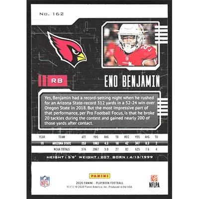 This is a 2020 Panini Playbook Orange Eno Benjamin football card. The card is #162 and pictures show condition.