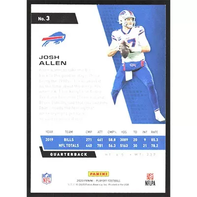 This is a 2020 Panini Playoff Josh Allen football card. The card is #3 and pictures show condition.