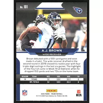 This is a 2020 Panini Prizm A.J. Brown football card. The card is #101 and pictures show condition.