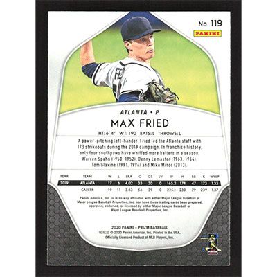 This is a 2020 Panini Prizm Max Fried baseball card. The card is #119 and pictures show condition.