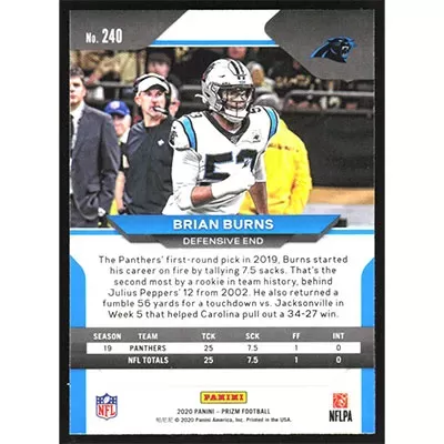This is a 2020 Panini Prizm Brian Burns football card. The card is #240 and pictures show condition.