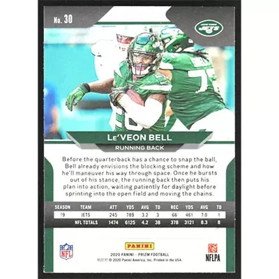 This is a 2020 Panini Prizm Le'Veon Bell football card. The card is #30 and pictures show condition.