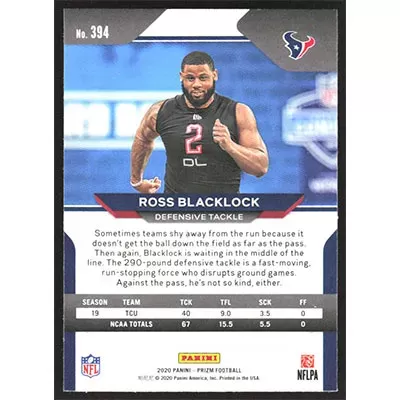 This is a 2020 Panini Prizm Ross Blacklock football card. The card is #394 and pictures show condition.