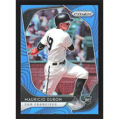 This is a 2020 Panini Prizm Carolina Blue Mauricio Dubon baseball card. The card is #155 and pictures show condition. Team(s): San Francisco Giants Rookie Card (RC)